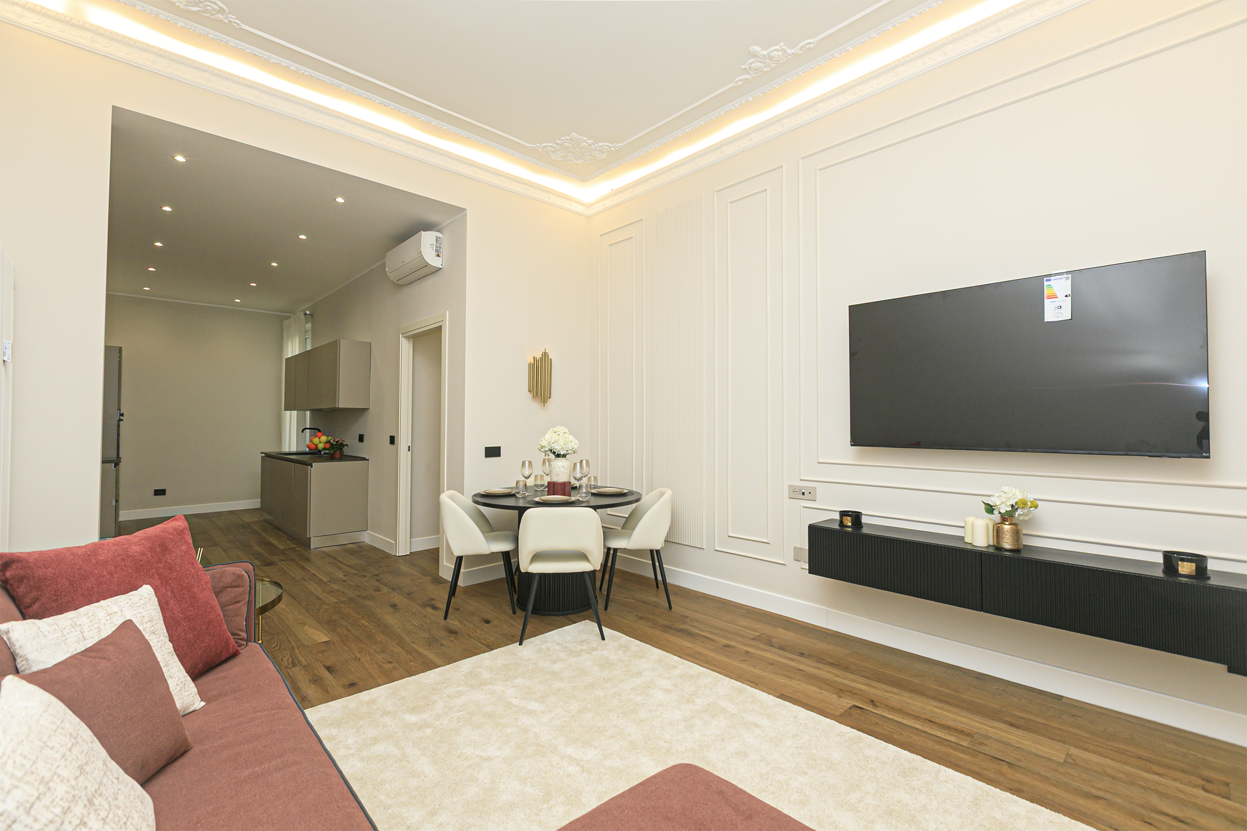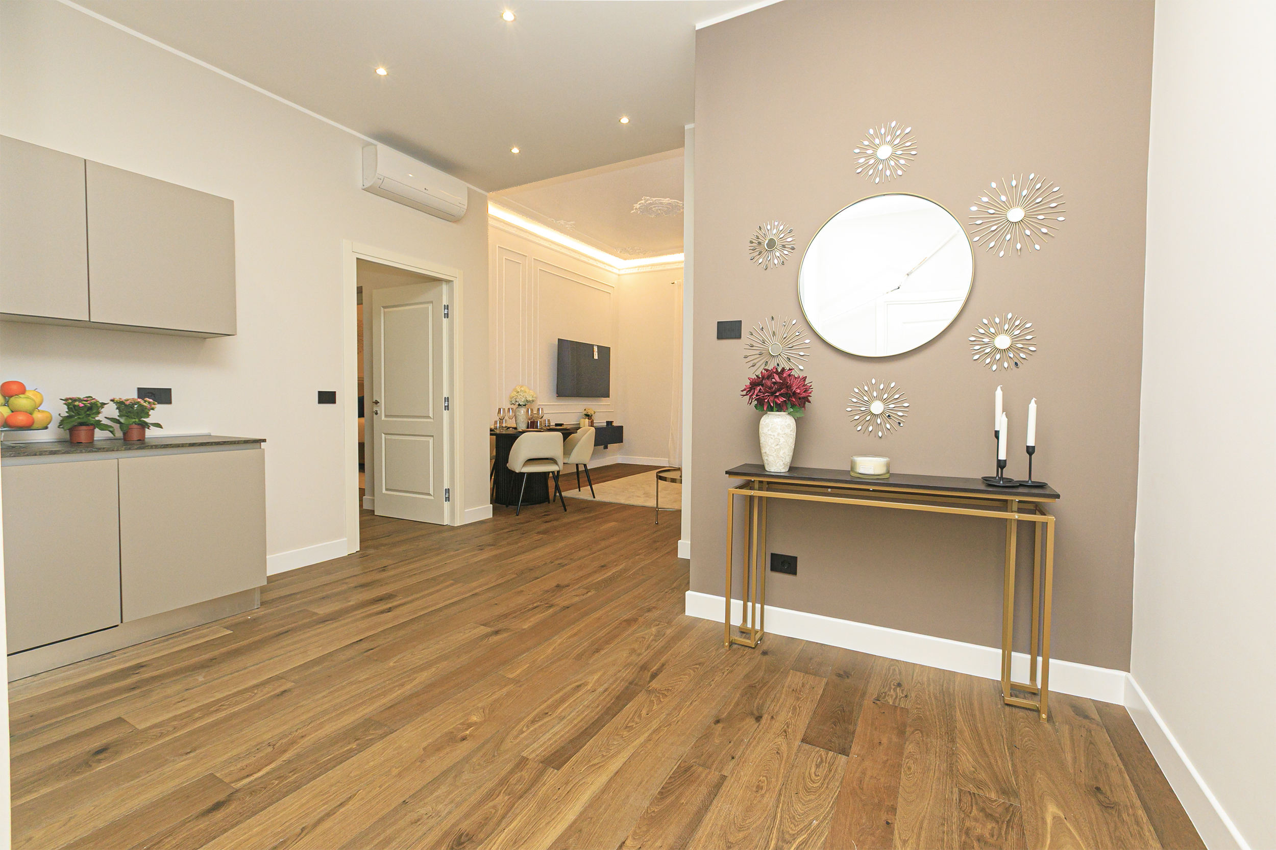 La ristrutturazione comprende: tutta l’impiantistica (impianto elettrico certificato LIVING NOW domotico), la pavimentazione in parquet, gli infissi in doppio vetro PVC taglio termico, i serramenti, l’illuminazione a led, impianto di climatizzazione n.3 split, gli infissi interni, i caloriferi tubolari DeLonghi, la porta blindata.